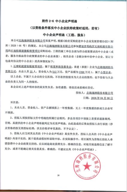 石南輪渡滾裝船租賃項(xiàng)目中標(biāo)公告