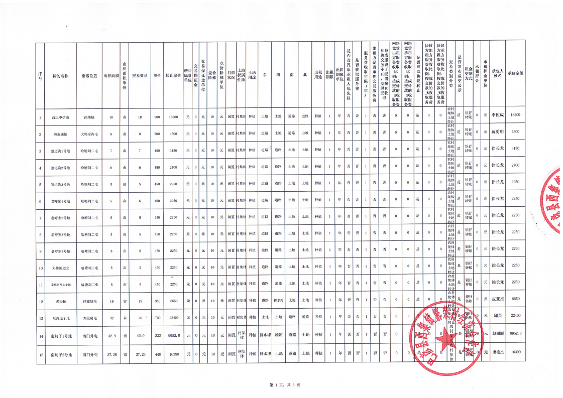 農(nóng)村產(chǎn)權(quán)(機(jī)動(dòng)地)項(xiàng)目成交公示
